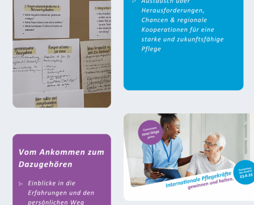 Die Themengruppe „Aus- und Weiterbildung“ setzt sich intensiv mit dem Fachkräftemangel im Gesundheitswesen auseinander. In den bisherigen Sitzungen stand dieses Thema im Mittelpunkt. Um fundierte Einblicke und neue Impulse zu gewinnen, werden regelmäßig Akteurinnen und Akteure aus dem Bereich Aus- und Weiterbildung sowie dem regionalen Arbeitsmarkt eingeladen.