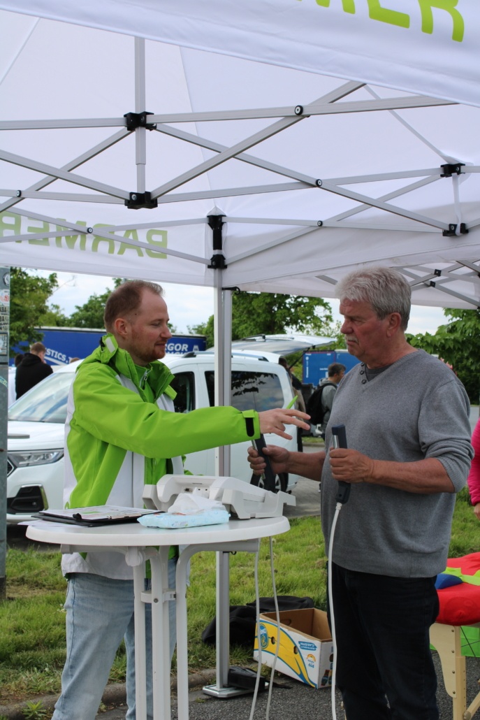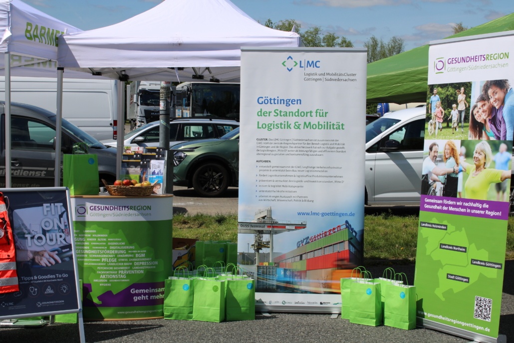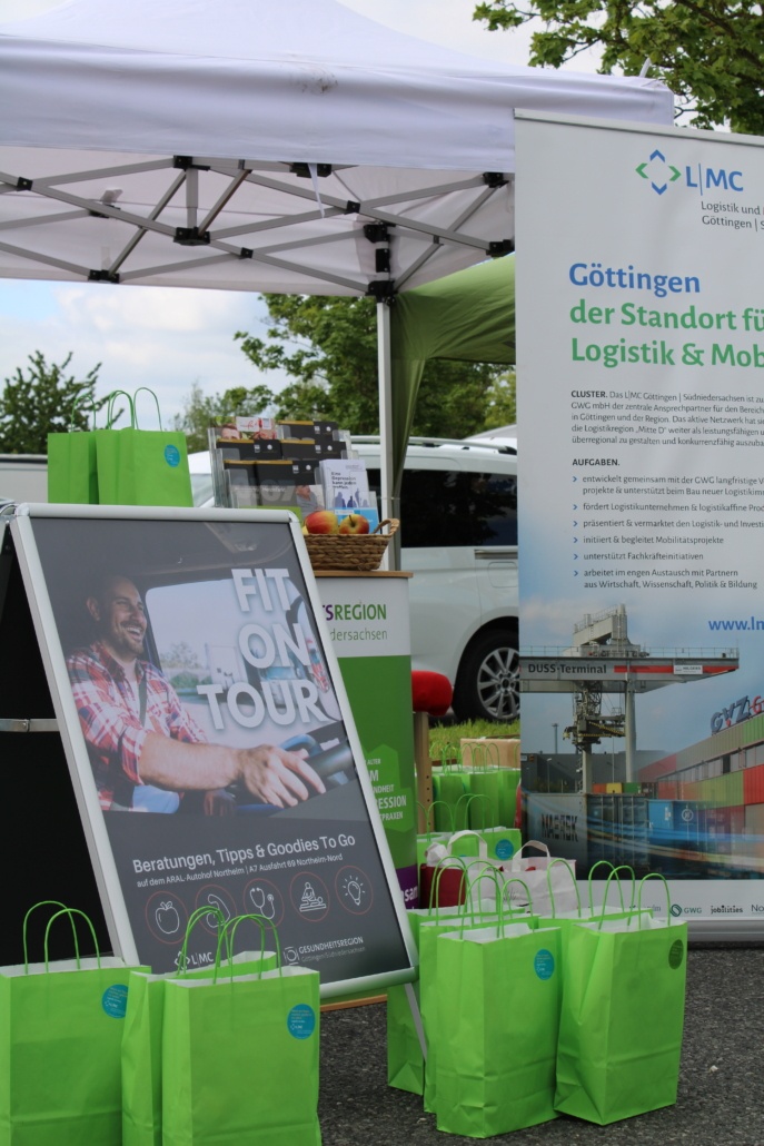 Am 6. Mai waren das L|MC Logistik und MobilitätsCluster Göttingen | Südniedersachsen und die Gesundheitsregion Göttingen/ Südniedersachsen im Rahmen der LKW-Sicherheitstage der Autobahnpolizei wieder mit dem gemeinsamen Aktionstag zur Förderung der Gesundheit von LKW-Fahrenden auf dem ARAL-Autohof an der A7 in Northeim. 👷♂️👷 Am Stand vor Ort wurden auch in diesem Jahr interaktive Gesundheitsaktionen angeboten und von den LKW-Fahrenden gerne genutzt. Neben einer Ernährungsberatung von Dr. Nina Schnedler von @physiotherapie_am_feldtor konnte man sich bei Katja Vorwahl von 2phyios@work zum Thema Bewegung in und am LKW beraten lassen. Die Barmer Krankenkasse aus Bremen war ebenfalls vor Ort und bot den Fahrerinnen und Fahrern einer Körperanalyse mittels einer Waage an.
