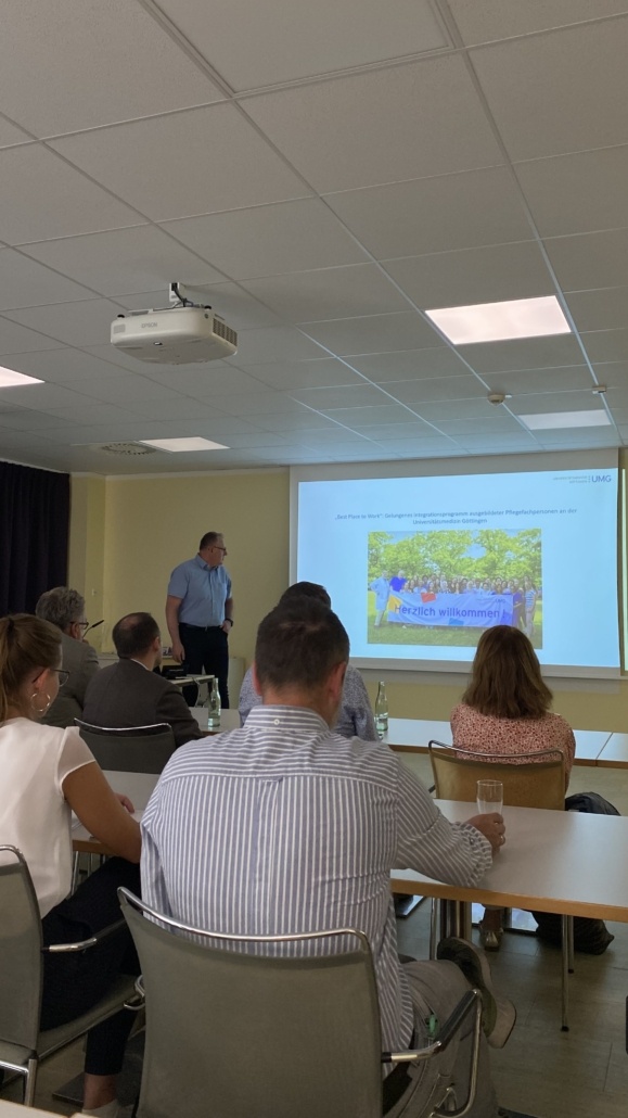 Am 23. Juni 2025 fand die Veranstaltung „Internationale Pflegekräfte gewinnen und halten – Gemeinsam neue Wege gehen“ am Standort Neu-Mariahilf des Ev. Krankenhauses Göttingen-Weende statt. Ziel war es, einen Erfahrungsaustausch zu ermöglichen und Ansätze für regionale Kooperationen zu entwickeln.