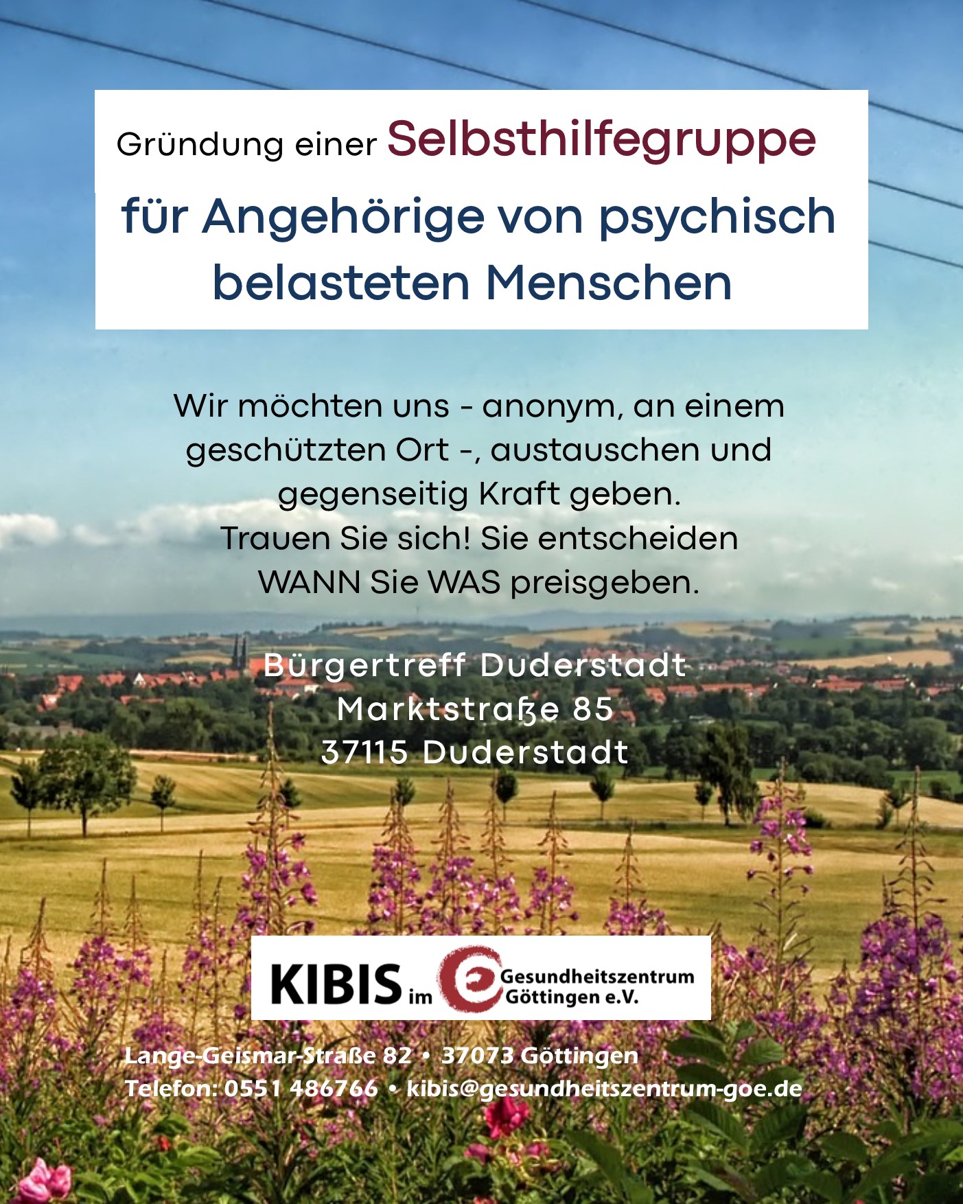 Neue Selbsthilfegruppe für Angehörige psychisch belasteten Menschen in Duderstadt