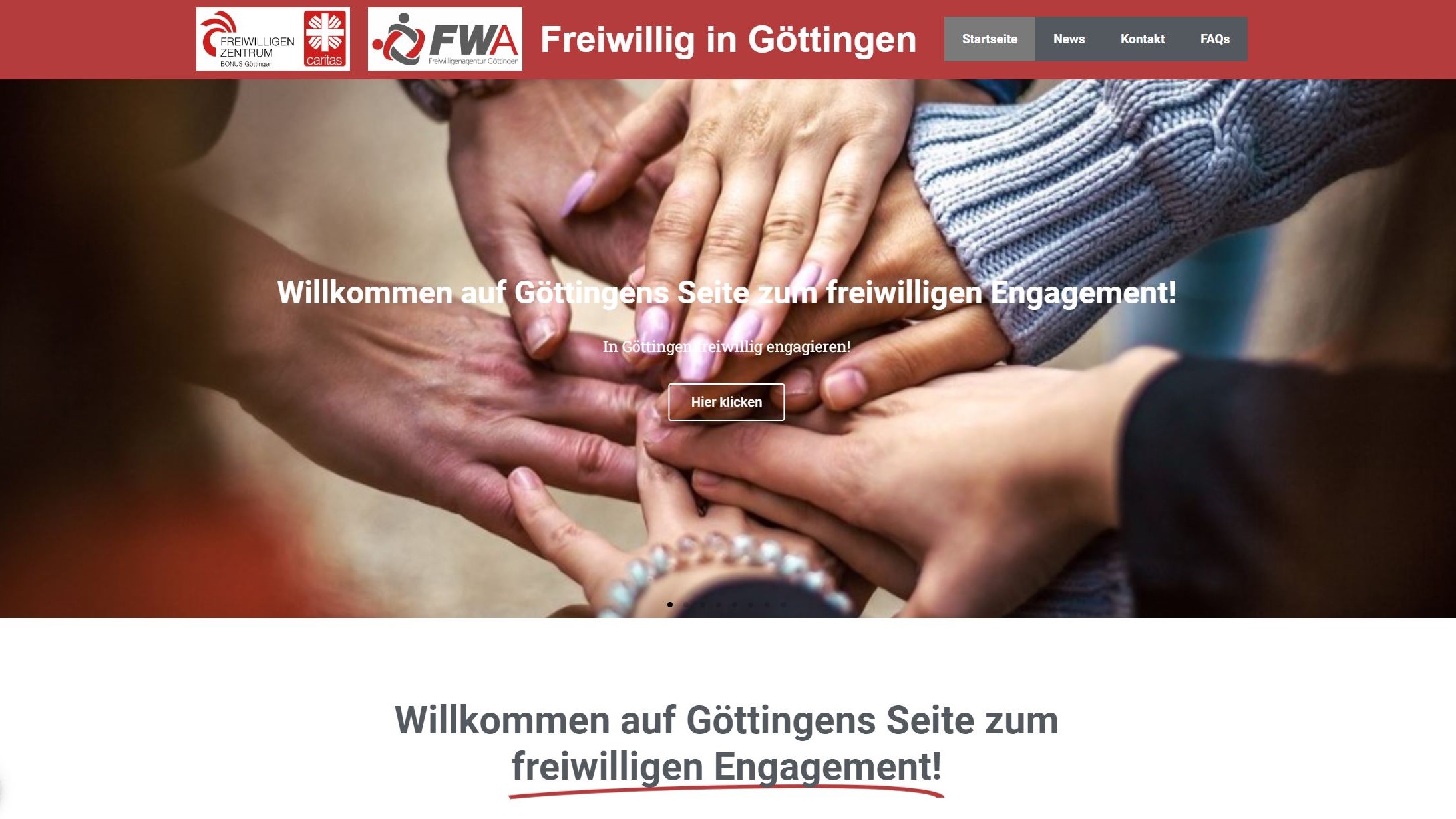 Auf freiwillig-in-goettingen.de bieten das Freiwilligenzentrum BONUS Göttingen der Caritas Südniedersachsen und die Freiwilligenagentur (FWA) des Stadtsportbunds Göttingen aktuelle Infos für freiwillig Engagierte, für Vereine und Initiativen mit Einsatzstellen sowie für alle Interessierten.