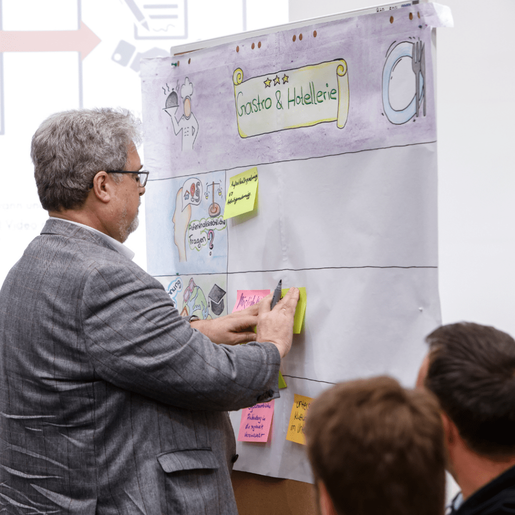 Im Anschluss wurden in drei parallelen Workshops branchenintern Lösungsansätze diskutiert und Erfahrungen ausgetauscht. Die Workshops wurde jeweils von den Referent*innen der Kurzimpulse begleitet. Der Workshop der Gesundheitswirtschaft wurde noch von Silke Jordan des Klinik- und Rehabilitationszentrums Lippoldsberg unterstützt.